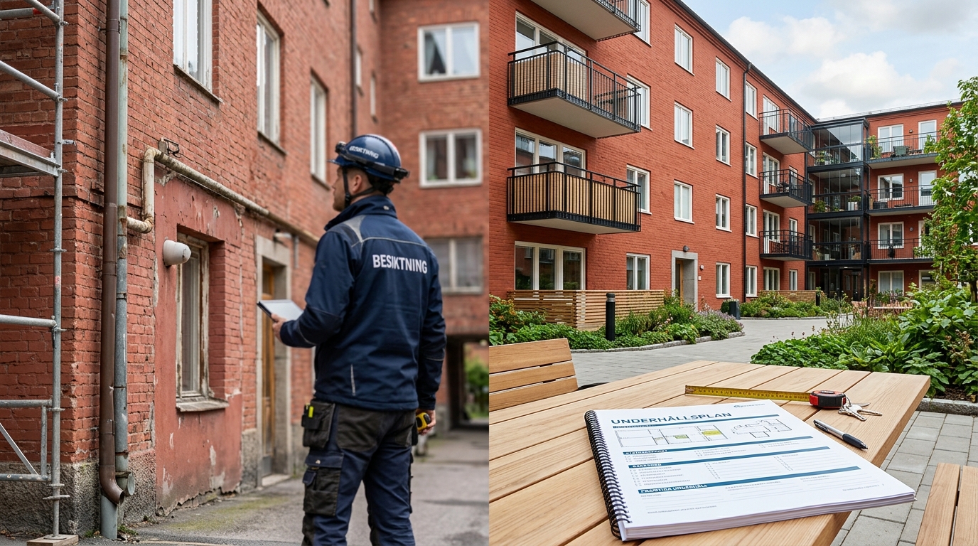 - Återkommande problem (fukt, ventilation, el) – där underhåll behöver kopplas till kontroller och åtgärder.