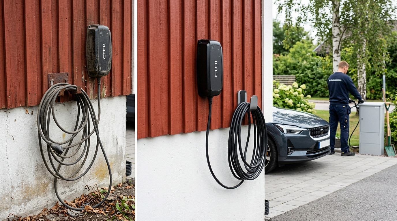 Vid tydliga skador eller sliten utrustning kan service leda vidare till åtgärder som Byte av befintlig laddkabel eller Byte av laddbox. Behöver du hjälp snabbt utanför ordinarie tider kan Jour elbilsladdning vara aktuellt.